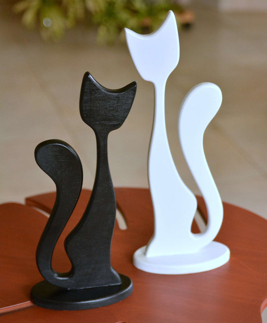 Juodos ir baltos katyčių dvynių medinės skulptūrėlės 34 cm. ir 39 cm.