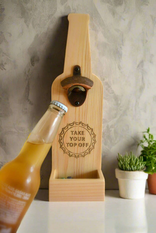 Pakabinamas alaus atidarytuvas su kamštelių gaudykle